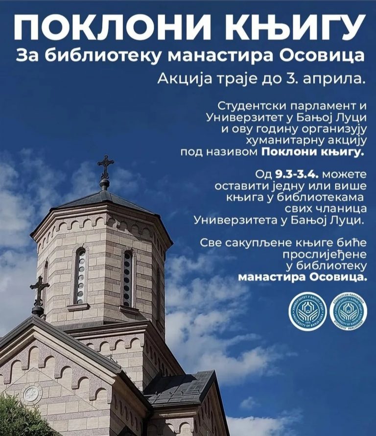 Akcija ,,Pokloni knjigu” za bogaćenje biblioteke manastira Osovica