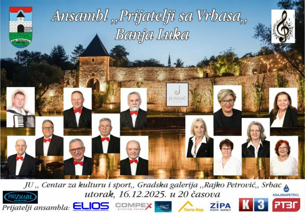 Srbac i Opštine Srbac organizuju koncert ansambla ,,Prijatelji sa Vrbasa” iz
