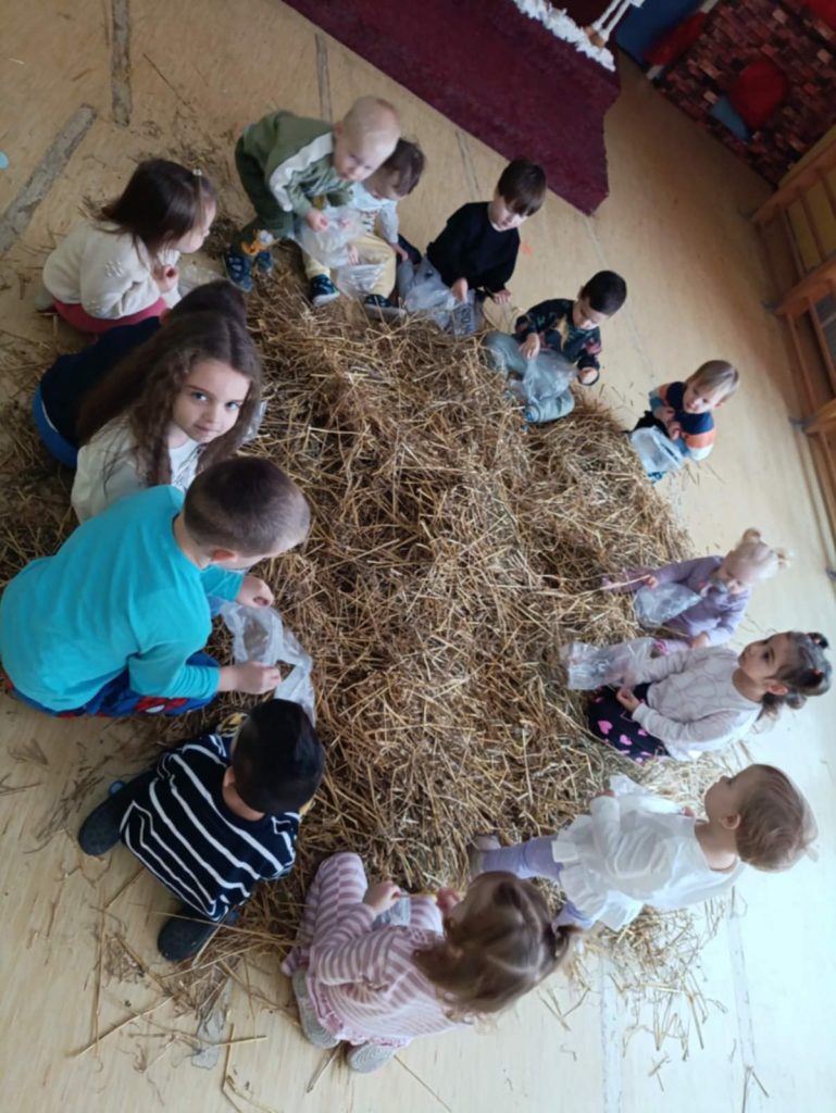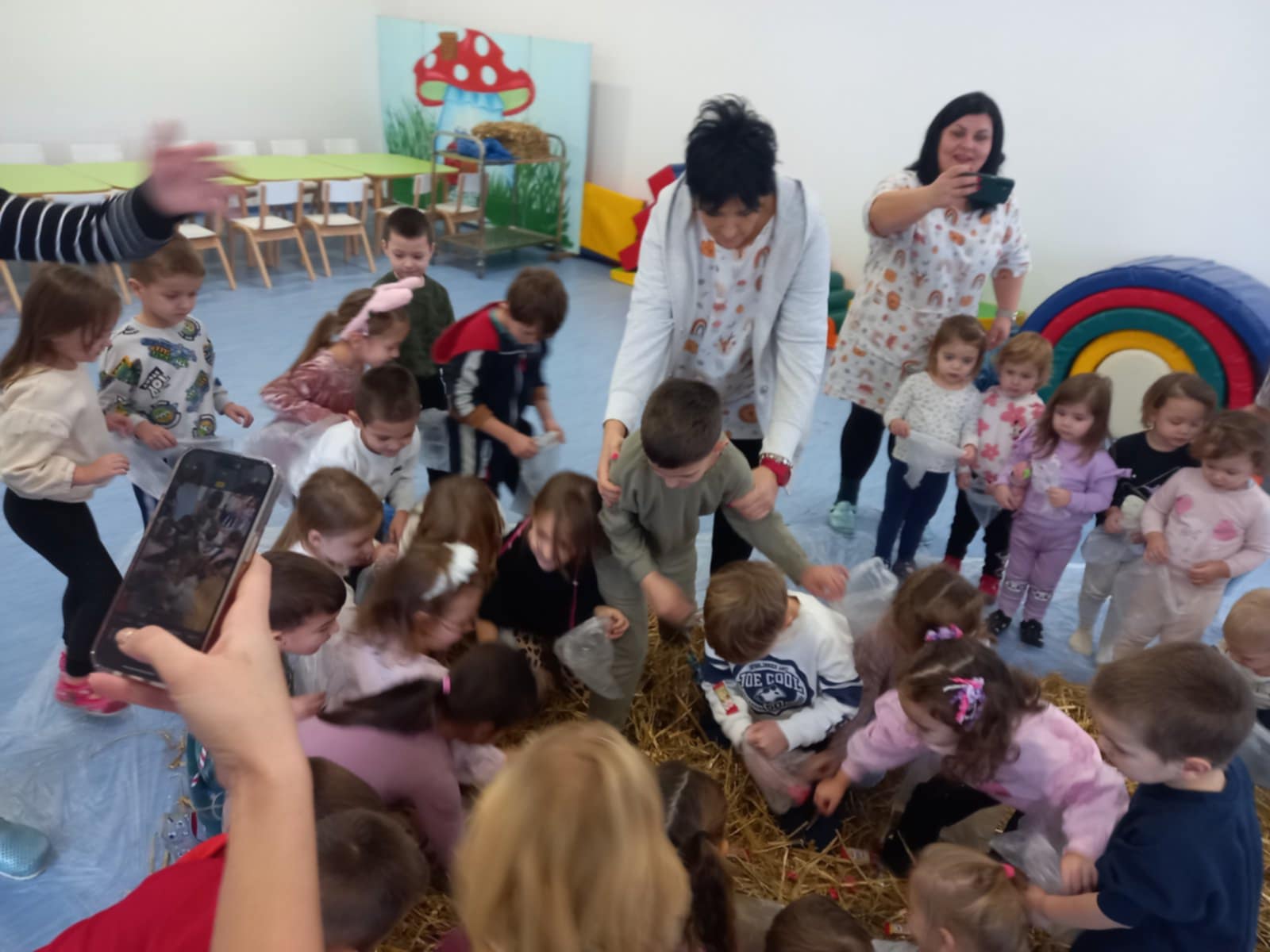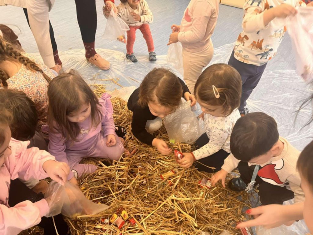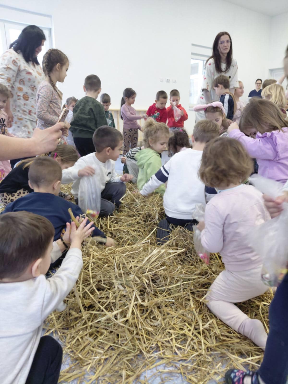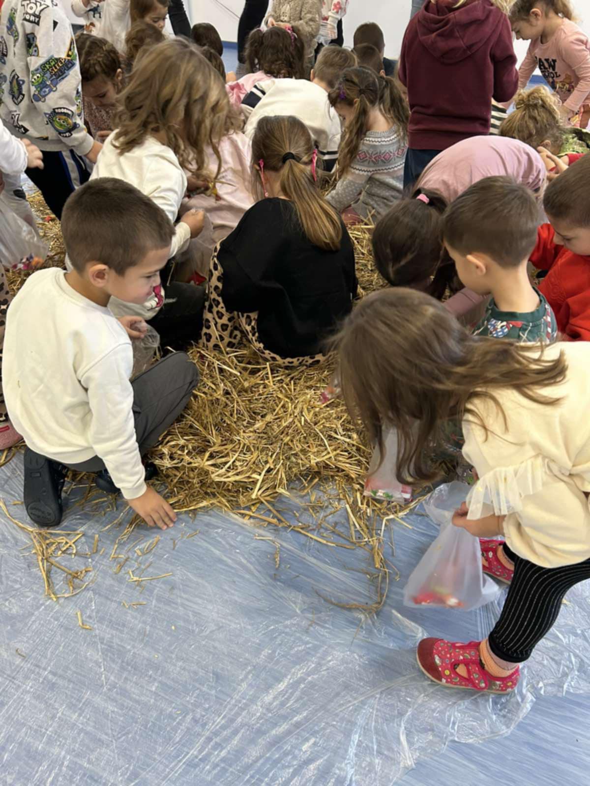 smijeha i veselja, pijukala i tražila slatkiše skrivene u slami.