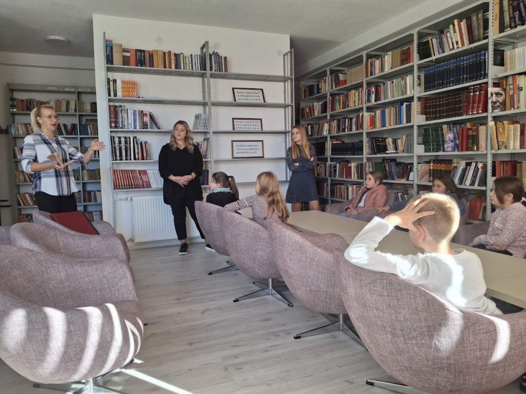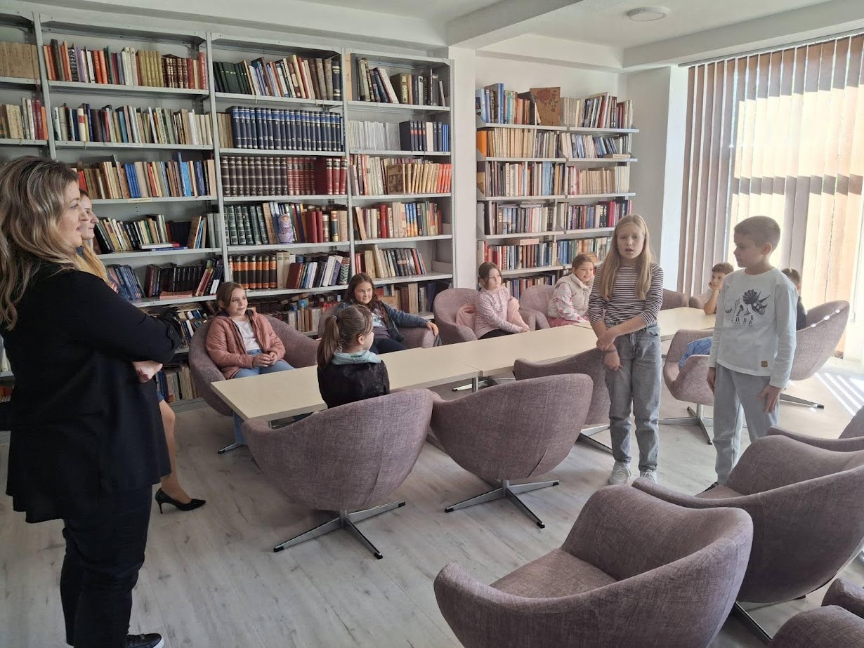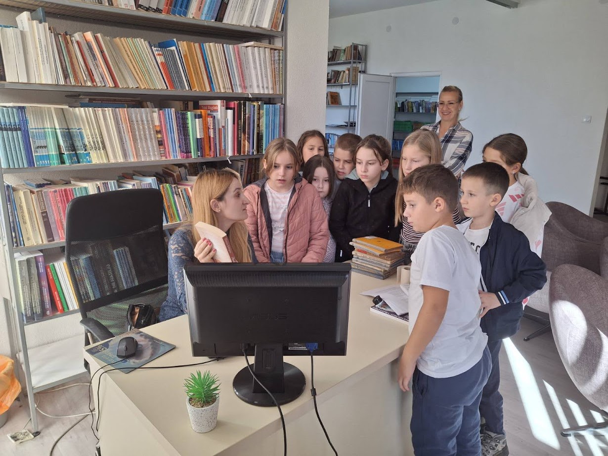 Učenici su imali priliku da razgledaju prostor, upoznaju se sa načinom pozajmljivanja knjiga i bogatim fondom koji biblioteka posjeduje.