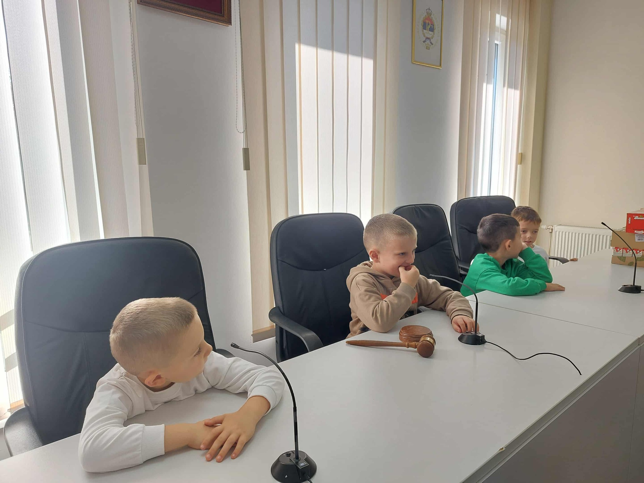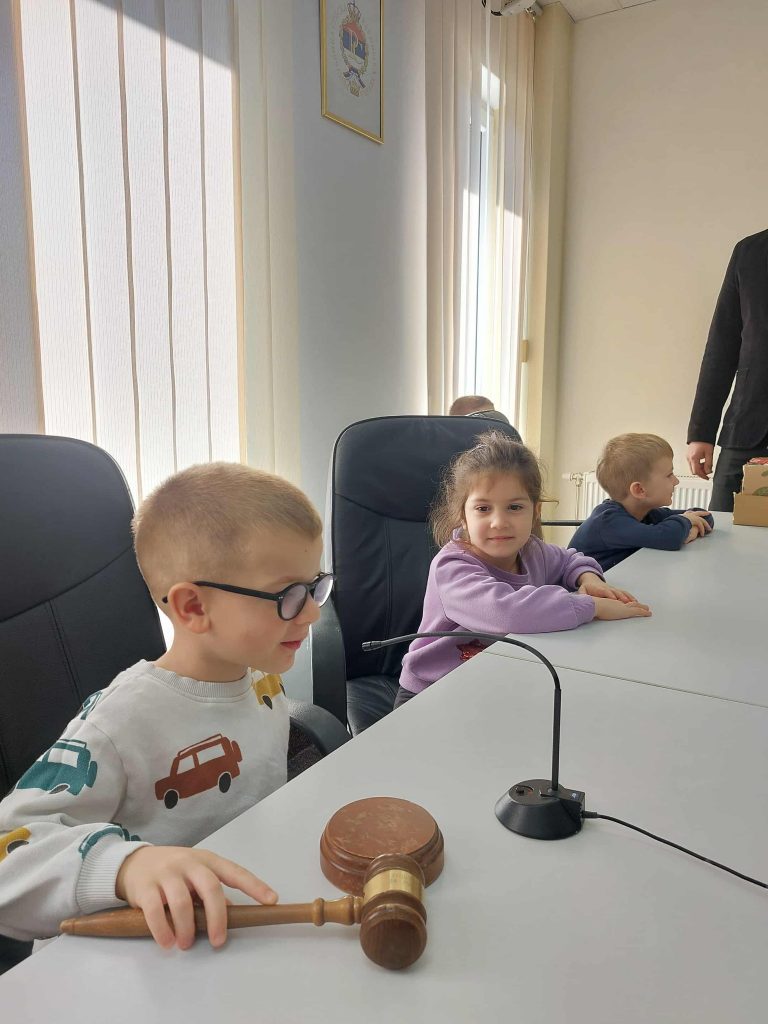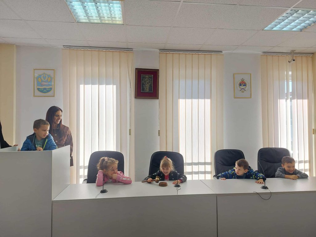 Polaznici Dječijeg vrtića ,,Naša radost” Srbac u pratnji direktorice Bogdane Miholjčić i vaspitačica ove predškolske ustanove posjetili su danas Skupštinu opštine, gdje su ih dočekali predsjednik lokalnog parlamenta Dejan Dević i sekretar Skupštine Srđan Brkić.
