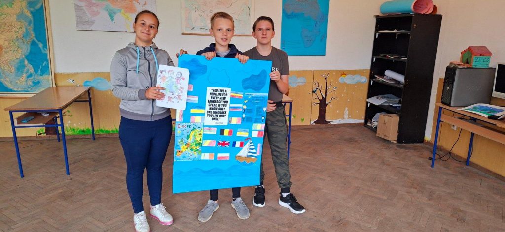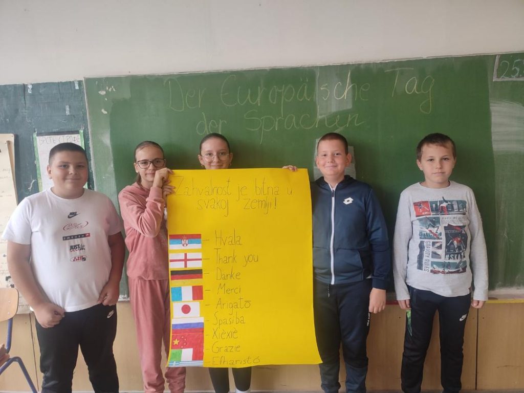 U područnoj školi, učenici su uz pomoć Jelene Đudurović-Vajkić, nastavnice njemačkog jezika, pripremili crteže, plakat, dijalog, pjesmu i jezički kviz. Nastavnica engleskog jezika, Karmela Miholjčić zajedno je sa učenicima pravila plakate i panoe sa zastavama i pozdravima na različitim jezicima, učili su neke osnovne riječi i fraze i pjevali su pjesmice na stranim jezicima.