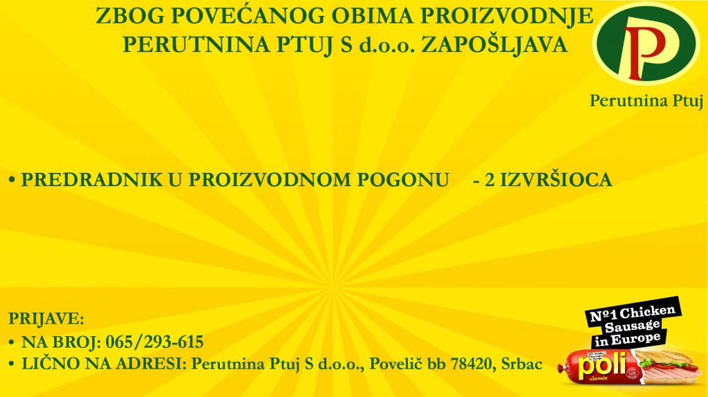 ,,Perutnina Ptuj S” zpošljava