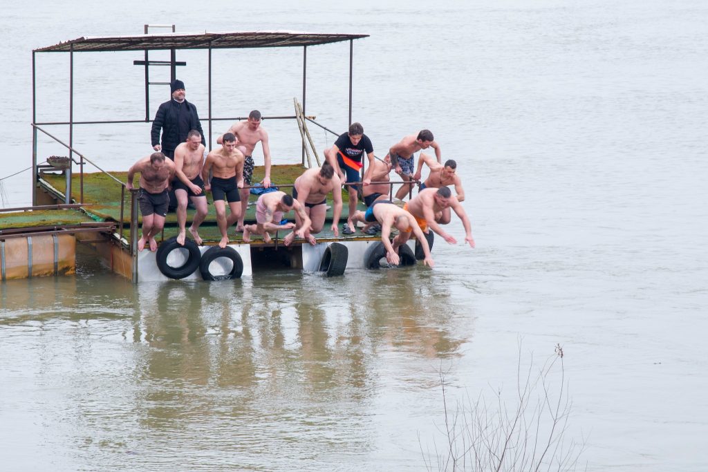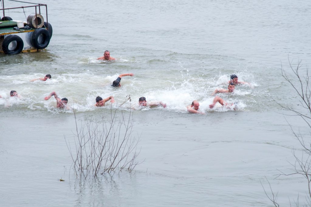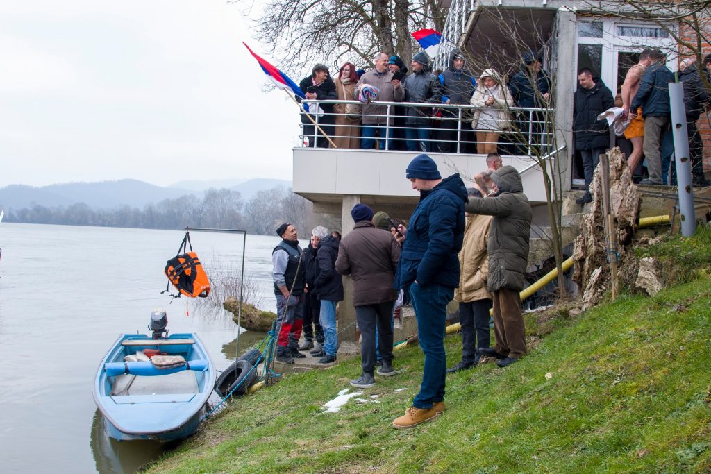 U hladnu rijeku Savu, na temperaturi ispod nule, danas se odvažilo da skoči 12 najhrabrijih kandidata, među kojima je do Časnog krsta prvi doplivao Miroslav Brkić iz Kukulja.