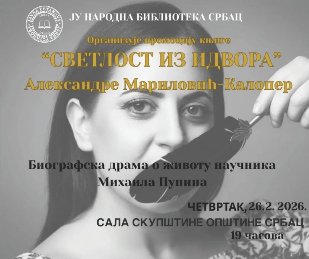 Narodna biblioteka Srbac organizuje večeras promociju biografske drame „Svetlost iz Idvora“ Aleksandre Marilović-Kaloper.